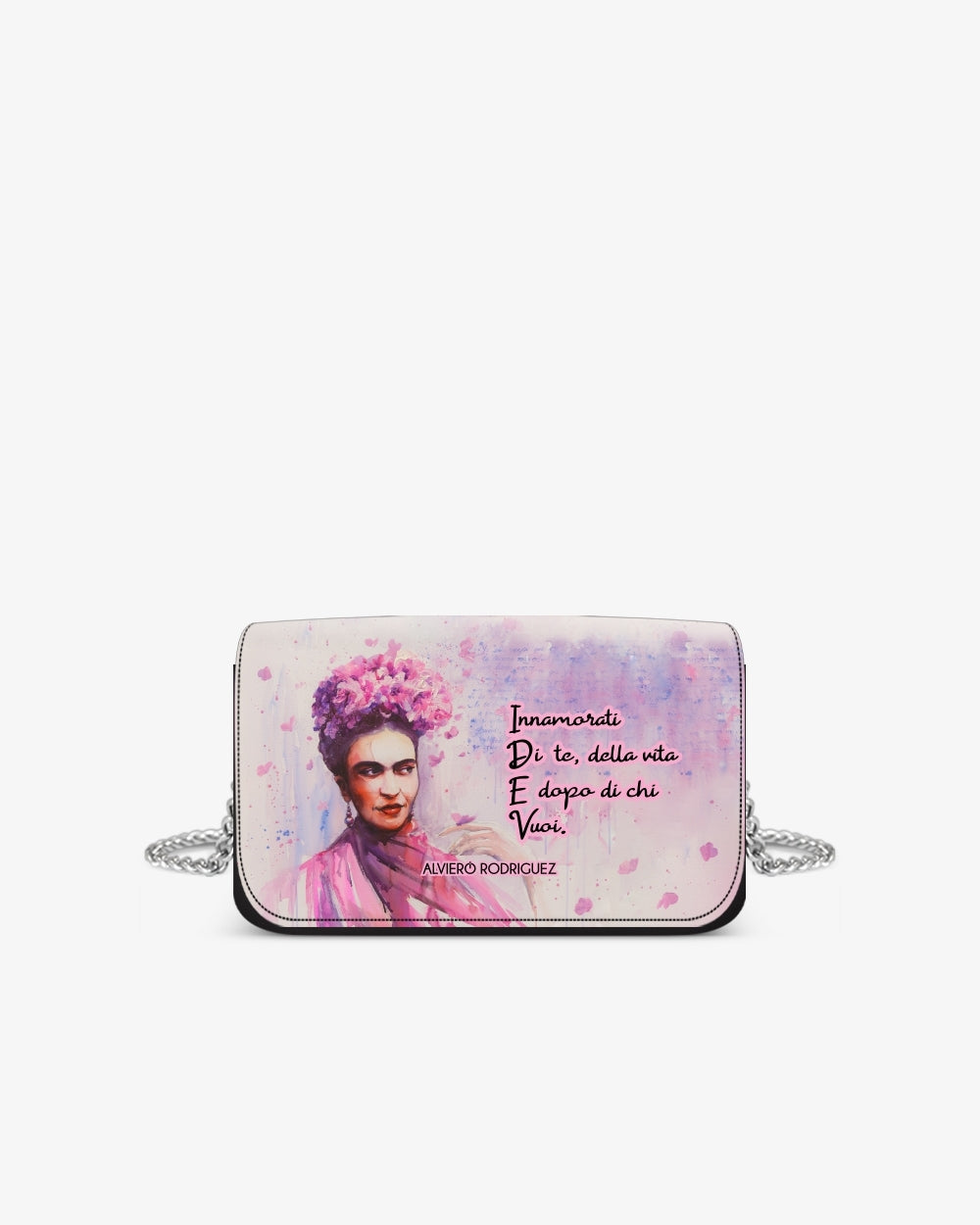La borsa Margot è realizzata in similpelle caratterizzata da una catenina metallica color argento con chiusura magnetica.