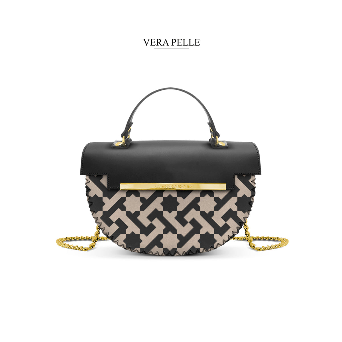 Le dimensioni della borsa sono di 24x17x7 e la sua forma insolita e irregolare la rende raffinata e chic,unita dalla presenza del manico per portarla a mano o a braccio,della catenina oro da mettere a tracolla e la particolare pattina con la placca in oro in cui è inciso il marchio.