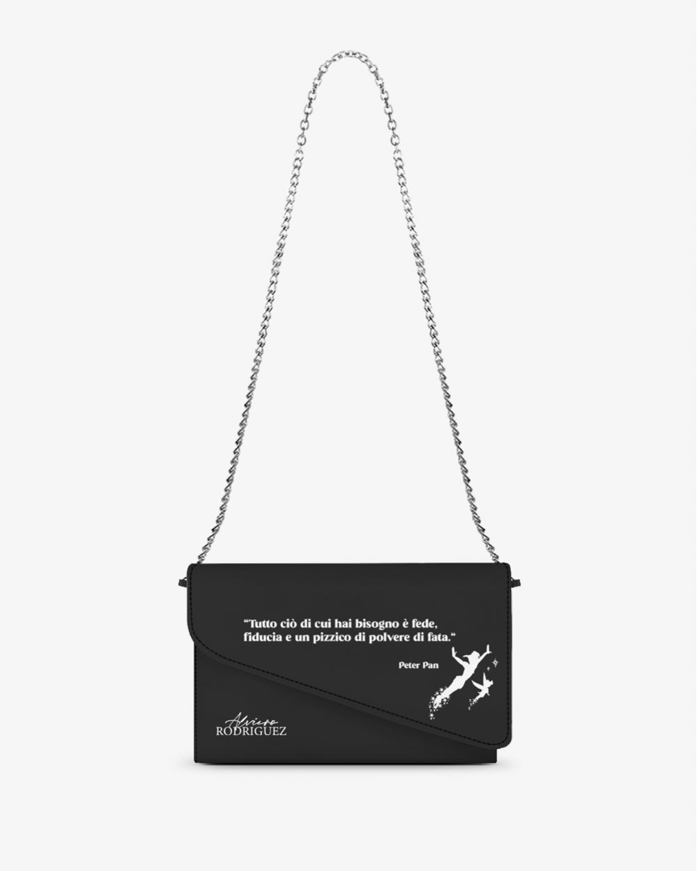 La borsetta Elegance è realizzata interamente in tessuto saffiano. La sua caratterista è data dalla pattina asimmetrica. Comoda e versatile per ogni tipo di look. Tutti i prodotti di Alviero Rodriguez sono lavorato in Italia e seguono un percorso di produzione dedicato.