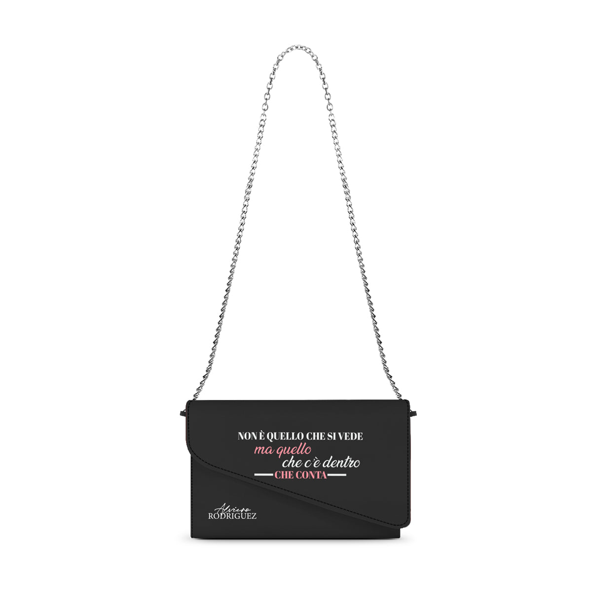 La borsetta Elegance è realizzata interamente in tessuto saffiano. La sua caratterista è data dalla pattina asimmetrica. Comoda e versatile per ogni tipo di look. Tutti i prodotti di Alviero Rodriguez sono lavorato in Italia e seguono un percorso di produzione dedicato.